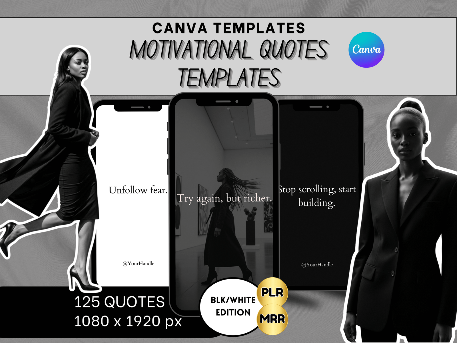 125 Motivational Quote Templates – Black/white Aesthetic | Canva Editable PLR | IG Story Quotes for Social media