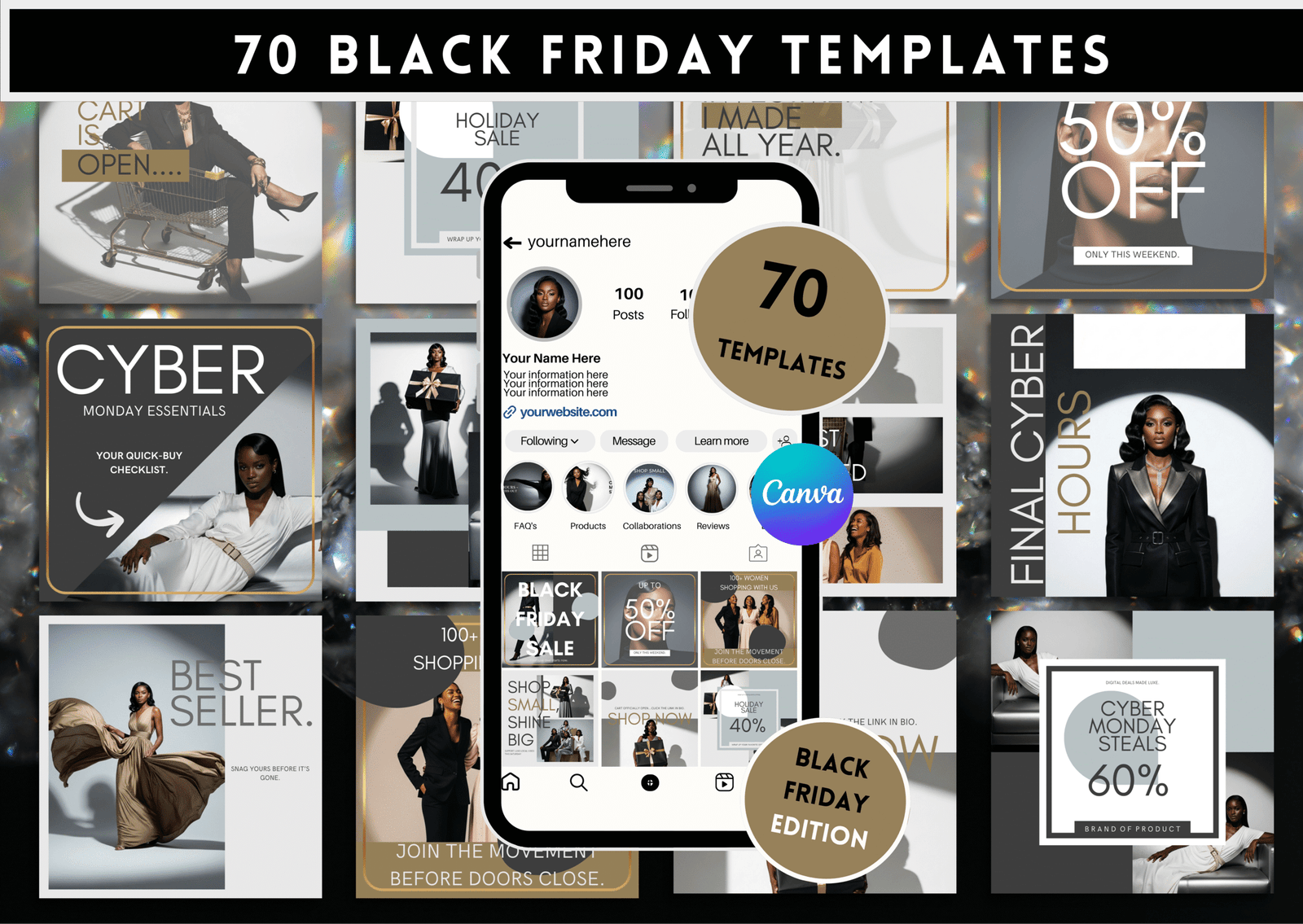 Your brand deserves a luxe look without spending weeks designing. The Black Friday Template Bundle is your all-in-one Canva kit to launch, promote, and sell with confidence.
