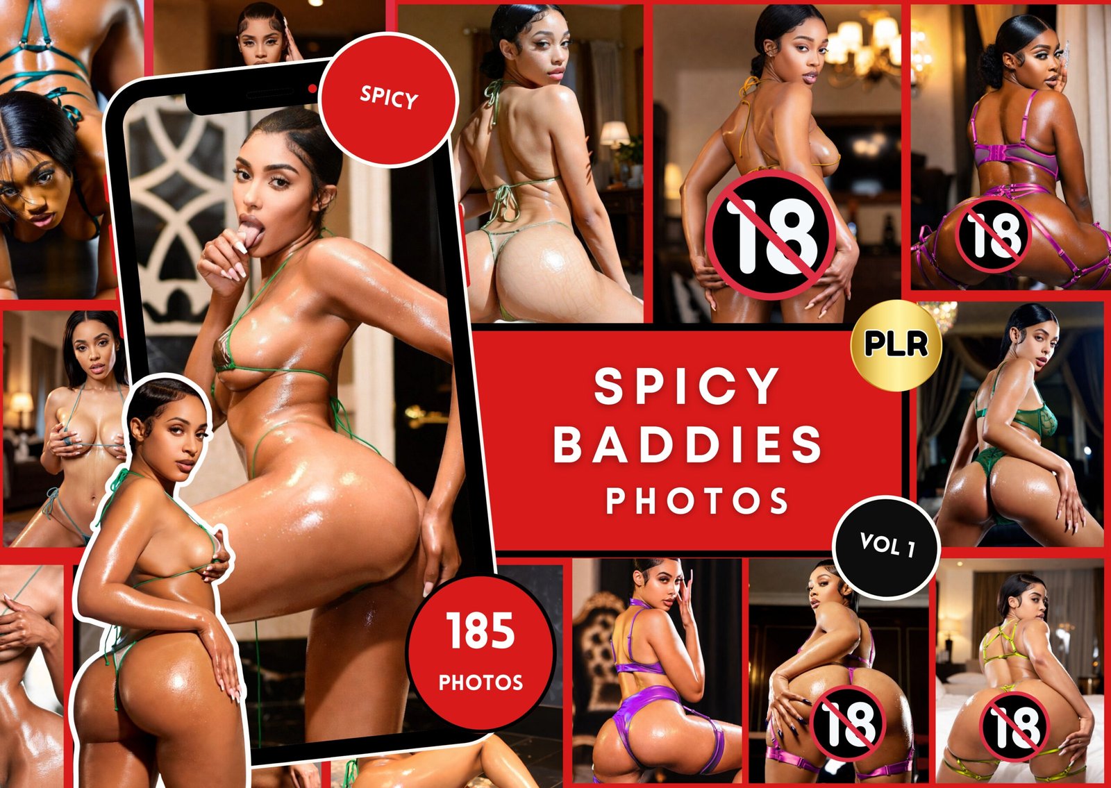 Spicy Baddies Photos Vol. 1 includes 185+ high-quality spicy images featuring bold poses, glossy skin, lingerie looks, and luxury indoor vibes.